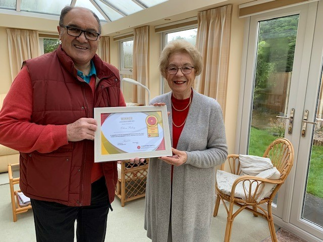Philip Walsh, Chairman of Friends of Real Lancashire, presents a Lancastrian Award to Olive Riley, Vice Chairman and Competitions Secretary of the Lancashire Authors Association. Her tireless work for the Association has ensured that the voices and stories of Lancashire continue to be heard and celebrated.
