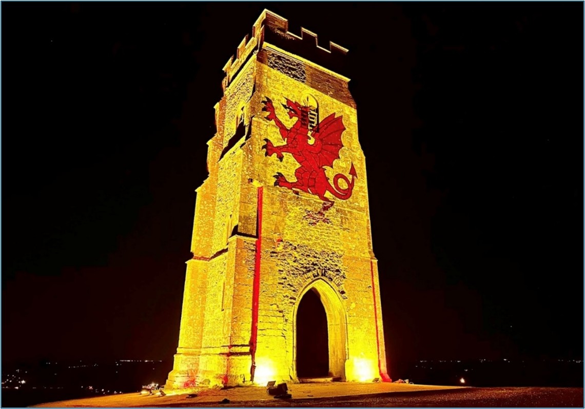The Somerset flag projected on to St Michael’s Tower on Glastonbury Tor as part of the celebrations of Somerset Day 2025.