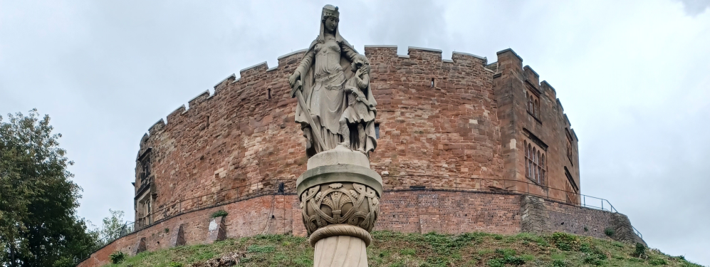 The banner image is of Tamworth Castle with the 1913 sculpture of Æthelflæd, the Lady of the Mercians, and her nephew Athelstan.