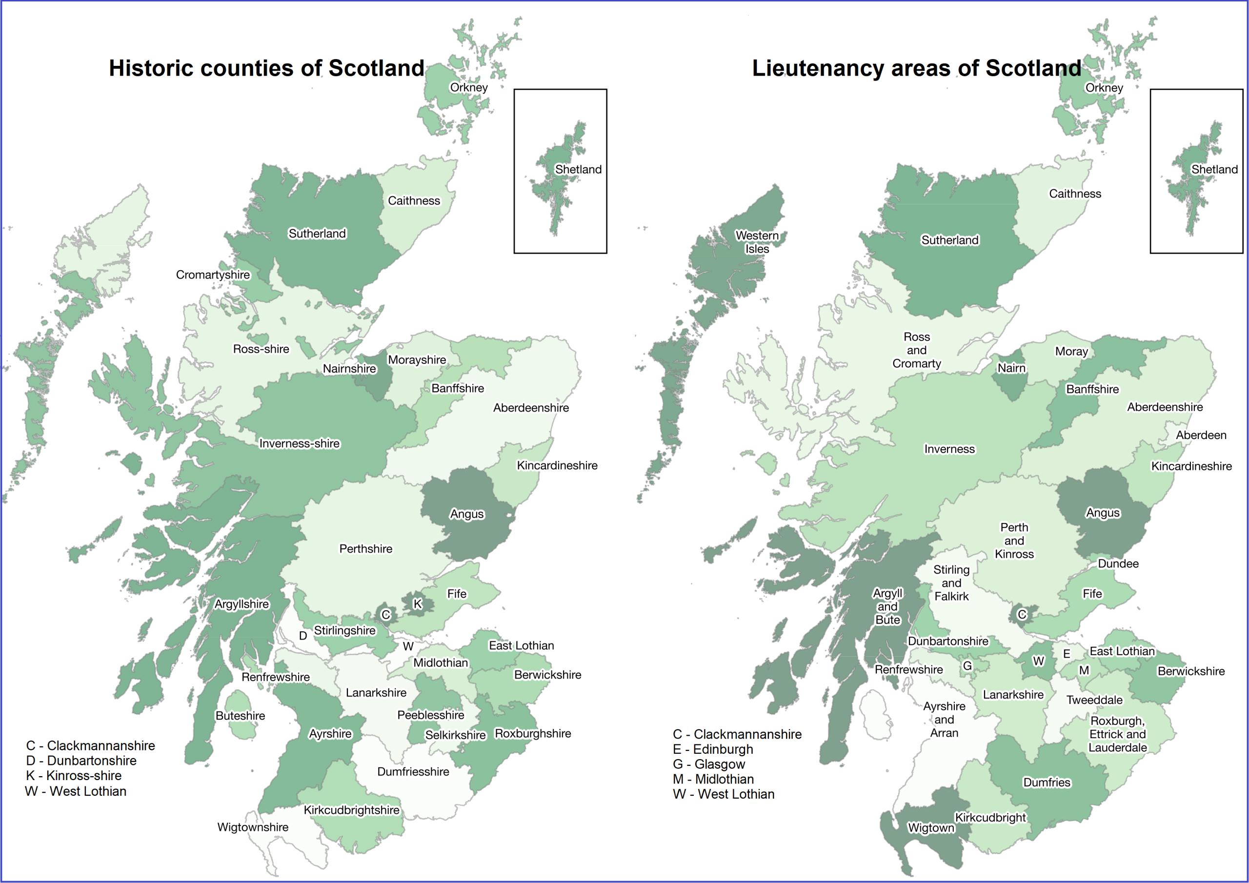It is sometimes thought that the lieutenancy areas in Scotland are more closely aligned to the real counties than are those of England and Wales. This is not actually the case.